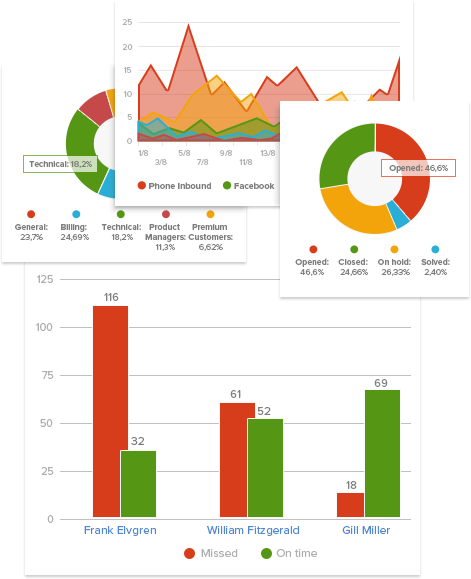 Nessun software per l’assistenza tecnica è completo senza un efficace sistema di reportistica integrata, per tenere sotto controllo le azioni e l’efficienza di tutti gli operatori: per questo Deskero offre oltre 20 report pre-configurati, per avere in qualsiasi momento una rappresentazione visivamente immediata e statisticamente accurata di tutta la propria gestione.